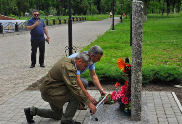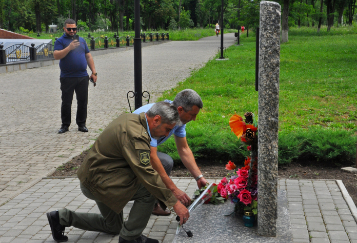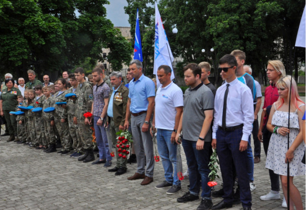 Участники шествия побывали в сквере Десантников, сквере Пограничников, у памятника "Погибшим от авиаудара 2 июня", в сквере Памяти. На каждой точке маршрута они возлагали цветы к памятникам защитникам Родины.