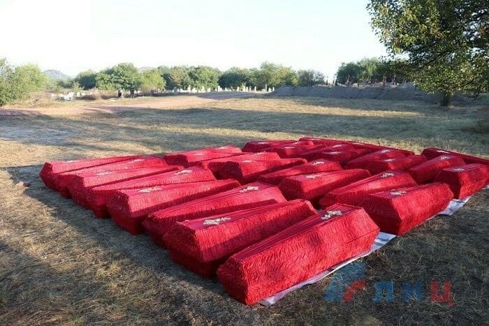 Церемония перезахоронения 28 останков жертв ВФУ прошла в прифронтовом Первомайске