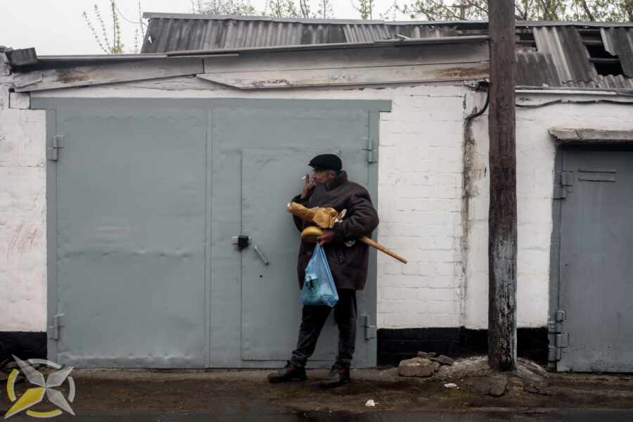 Решили проехаться по окрестностям и раздать оставшуюся помощь там, куда слух о том, что приехала гуманитарная помощь, не смог добраться. Заехали в частный сектор в поисках того, кому могут понадобиться хлеб, вода, свечи, спички, батарейки. Остановились возле калитки, где стоял пожилой мужчина.