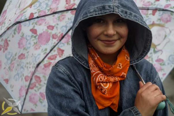 Во время одной из таких остановок возле очередного дома с людьми к нам подошла девочка с необычным именем Алисия. Через несколько дней ей исполнится 15 лет. Она в руках держала зонтик с принтом с цветочками, на шее был оранжевый платок с турецкими огурцами, а на голове у неё был накинут джинсовый капюшон. Женщины вокруг подталкивали её к нам, чтобы она рассказала написанное ею стихотворение.