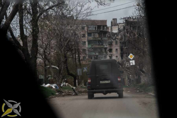 По пути успел прочитать о том, что президент России Владимир Путин дал приказ не штурмовать «Азовсталь», а заблокировать нацистов в их катакомбах. В течение часа мы ехали в непосредственной близости от места, которое в этот момент обсуждал весь мир. Среди белого дыма с зияющими огромными дырами торчало здание завода, несколько ЛЭП и пара труб. Отчётливо были видны следы после прямых попаданий. Находившимся там нацистам не позавидуешь.