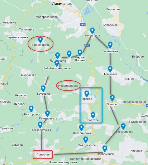 Осуществить это удалось благодаря взятию Волчеяровки и установлению огневого контроля над дорогой Северск — Лисичанск, что означает оперативное окружение.