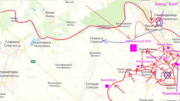 При этом появляется информация, что заблокированная в котле «горско-золотовская» группировка уже выходит на связь для переговоров о сдаче в плен. Сообщают, что боевики «Айдара» на заводе «Азот» в Северодонецке также заявили о готовности сдаваться.