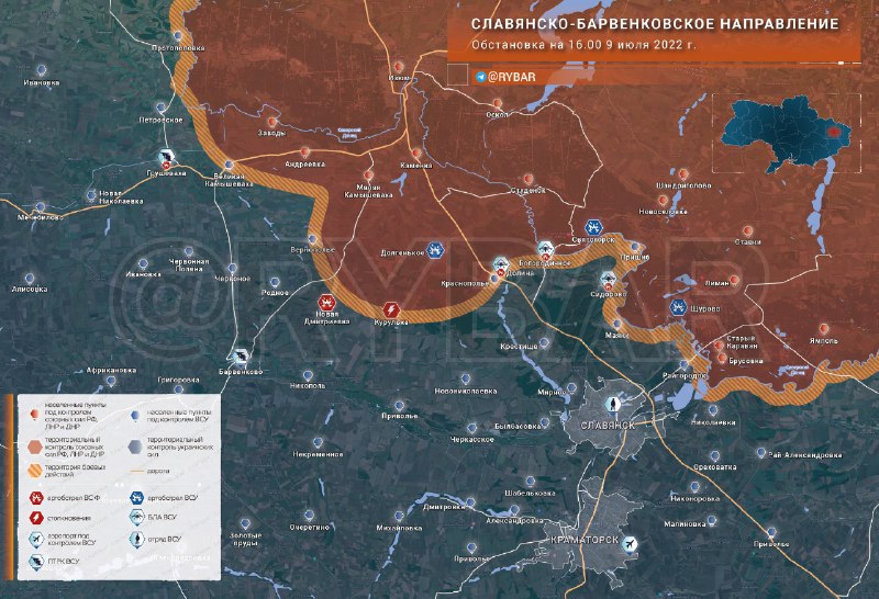 Обстановка на Славянско-Барвенковском направлении по состоянию на 16.00 9 июля 2022 года