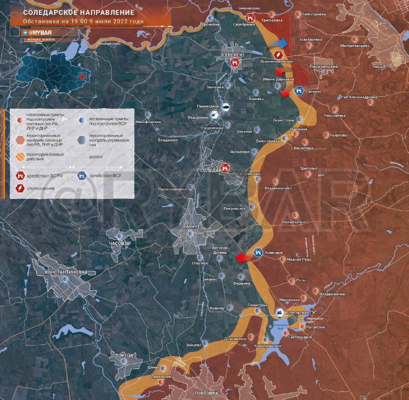 Обстановка на Соледарском направлении по состоянию на 19.00 9 июля 2022 года