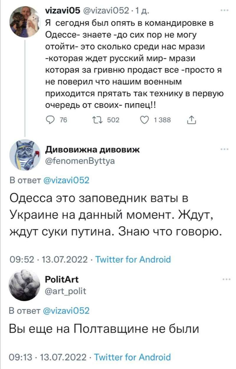 Вот впечатления о настроениях в Одессе уже укропов: