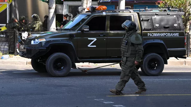 Саперы международного противоминного центра министерства обороны РФ во время разминирования центральной улицы Донецка