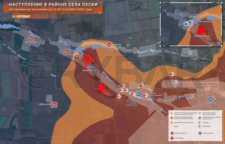 На фоне проседания фронтов на Лиманско-Купянском и Николаевско-Криворожском направлениях положение дел под Донецком для российских войск только улучшается: штурмовые группы продолжают расширять зону контроля вокруг села Пески и Донецкого аэропорта.