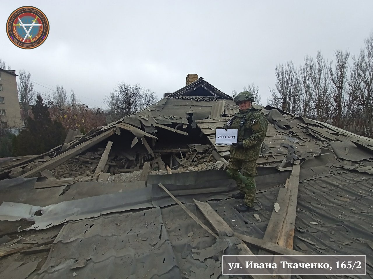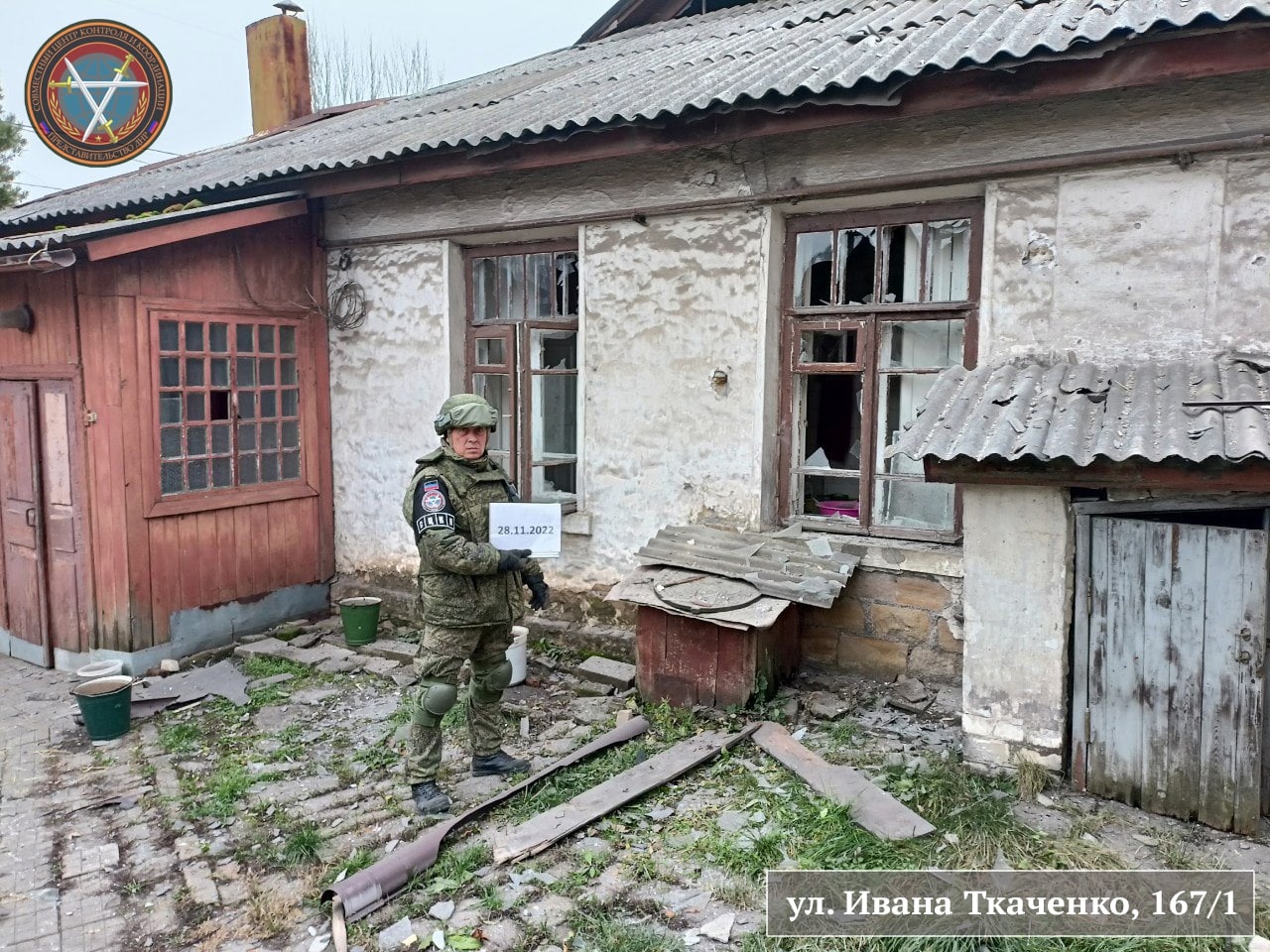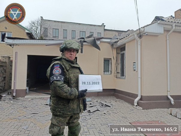 Фиксация последствий обстрела Ленинского района Донецка 28.11.2022
