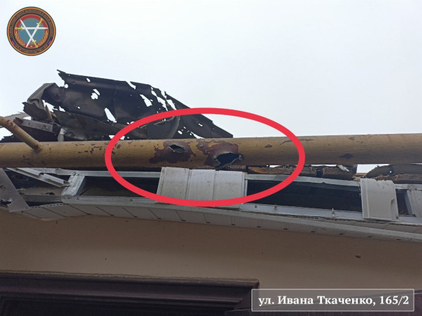 - ул. Ивана Ткаченко,165/2 – прямое попадание в кровлю дома;
