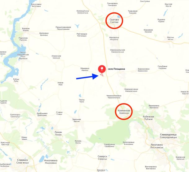 Кременная — Сватово: обстановка тяжёлая, враг накануне, прорвав оборону, вошёл в Червонопоповку, но уже вчера был отброшен нашими подразделениями на ранее занимаемые позиции. При этом сам посёлок остаётся теперь в серой зоне.