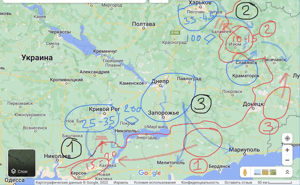 Имея данные о российских войсках первой линии и резервах, ВСУ решило начать с наступления в херсонской области и после переброски туда резервов начать наступление под Балаклеей. И затем завершить прорывом в запорожской области.