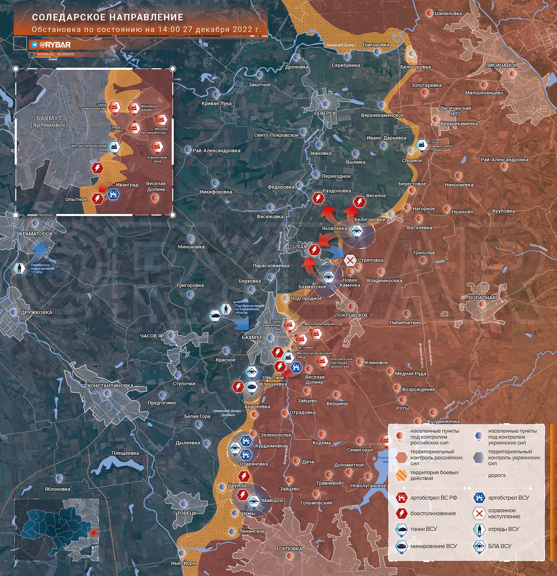 ▶️ На Соледарском участке «вагнеровцы» продолжают продвигаться в нескольких направлениях, планомерно улучшая тактическое положение. В настоящее время бои идут в окрестностях Раздоловки, Веселого и на восточной окраине Соледара со стороны Бахмутского.