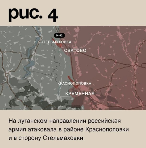 На луганском направлении российская армия атаковала в районе Краснопоповки и в сторону Стельмаховки. (Рис. 4)