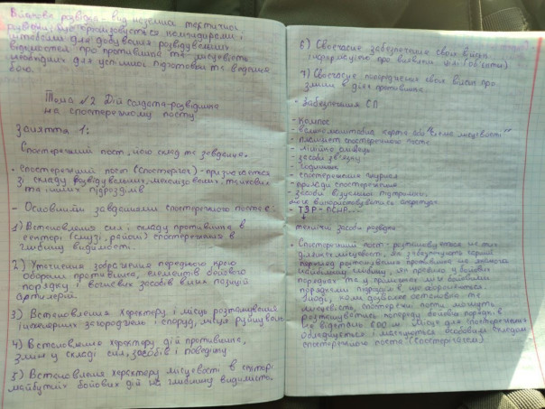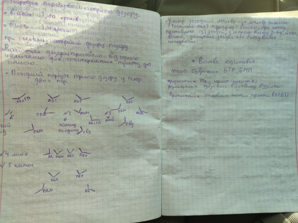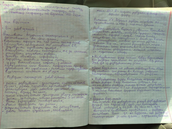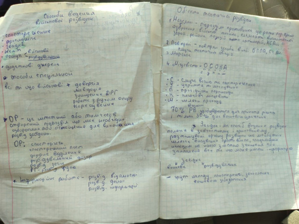 Позавчера на Донецком направлении была уничтожена ДРГ противника. Выжившие, но раненые разведчики ВСУ попали в плен. Как бы смешно это ни выглядело, но у одного из них в сухарнице было несколько тетрадей с конспектами по следующим темам: