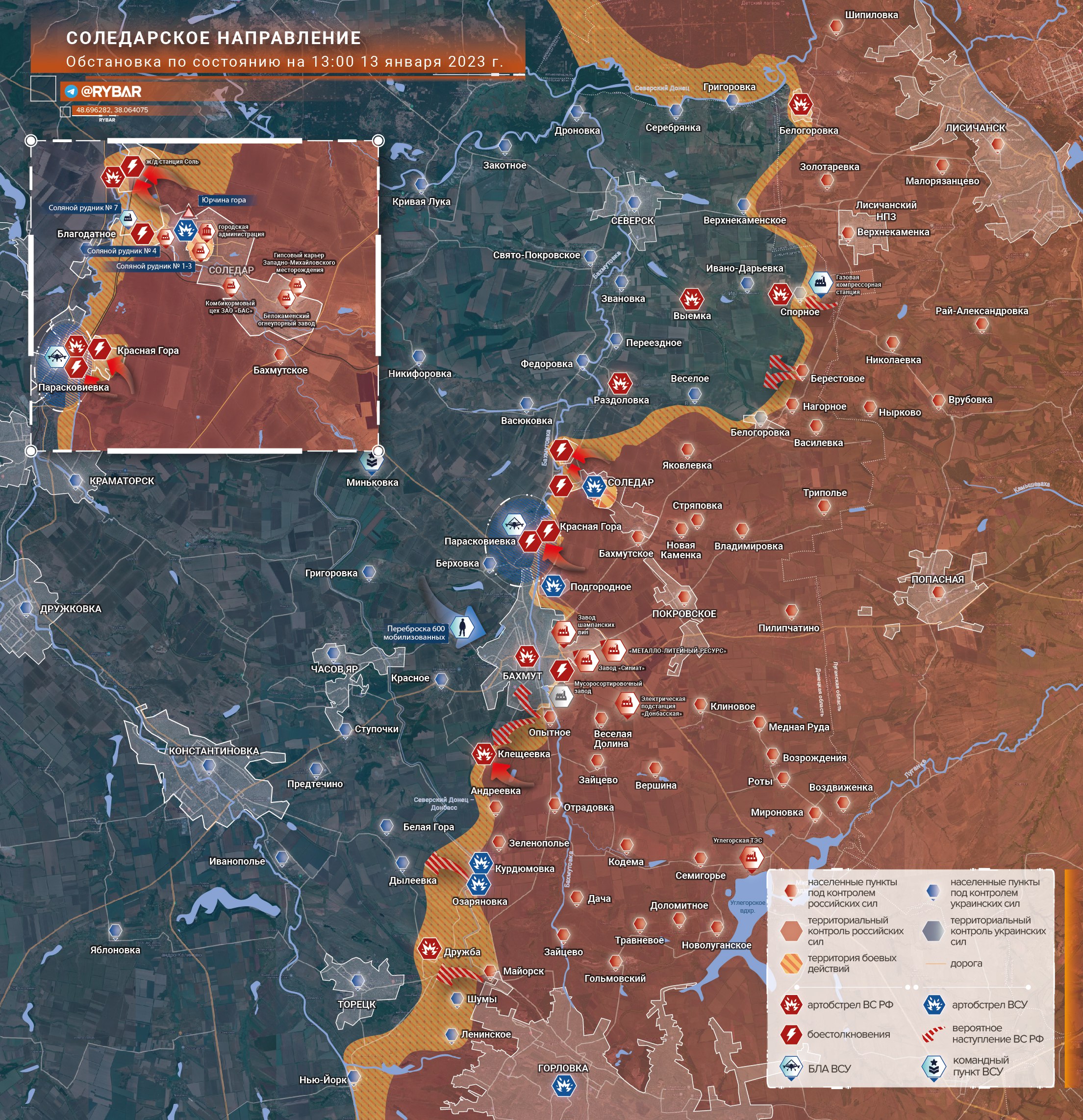 Соледарское направление обстановка по состоянию на 13.00 13 января 2023 года