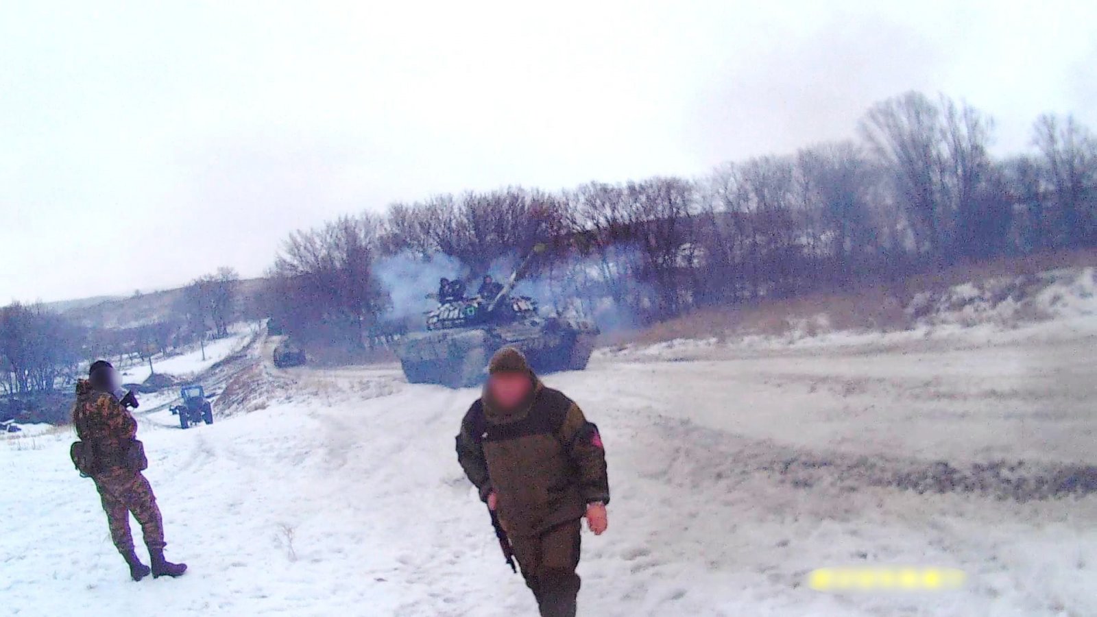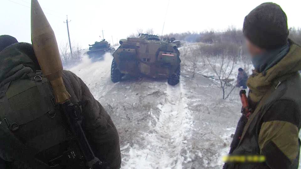 Броня отдельного механизированного батальона Народной Милиции идет на штурм высоты 307,9