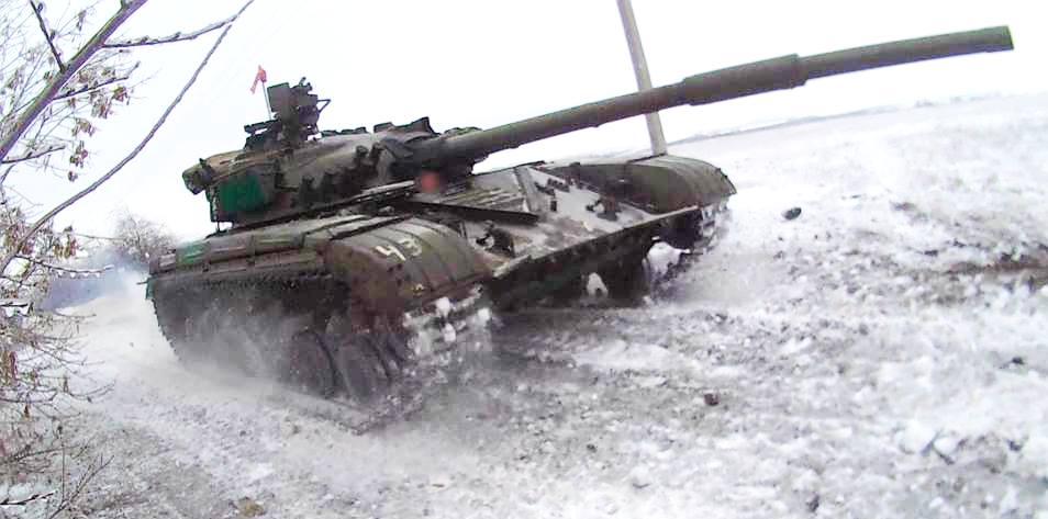 Танк отдельного механизированного батальона Народной Милиции выдвигается на позиции
