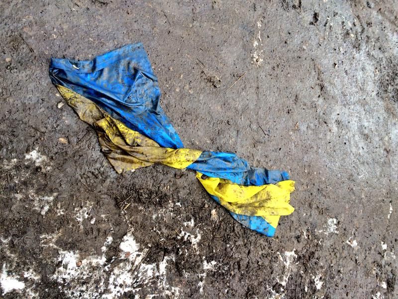 Кто-то из местных нашел укр.флаг, хотели сжечь, но решили затоптать. Говорят: укр.силовики - не выпускали из города