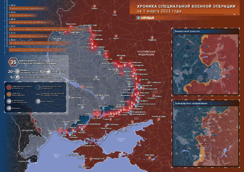 Карта военных действий и ситуация на фронтах вечером 1 марта