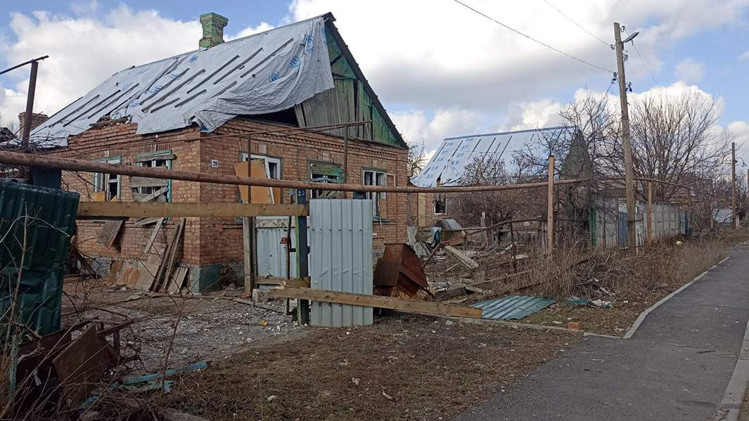 На улицах хорошо видно, что противник, откатываясь в застройку, укреплялся в домах. В частном секторе выделяются белые крыши — это местные жители закрывали свои дома гидроизоляцией, а между ними, в соседних домах, размещались украинские боевики. В одноэтажных домиках хорошо видны и огневые точки, и мешки на окнах. Опорные пункты боевиков были в амбулатории, школе и церкви — самых больших и крепких строениях района.