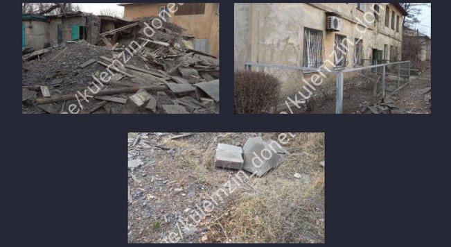 12:30 Последствия вчерашнего обстрела жилых домов в районе площади Правды в Петровском районе Донецка.