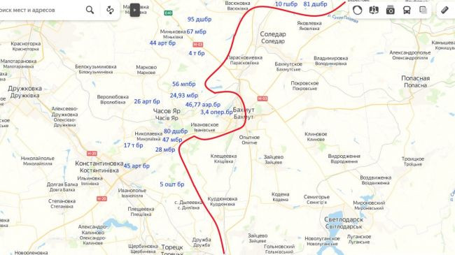 Хотя не все они полностью укомплектованы, но все равно — «сила грозная». Суммарно это до 50 000 — 55 000 человек на фронте от севернее Соледара до северных окраин Торецка (не считая «мяса» из теробороны).