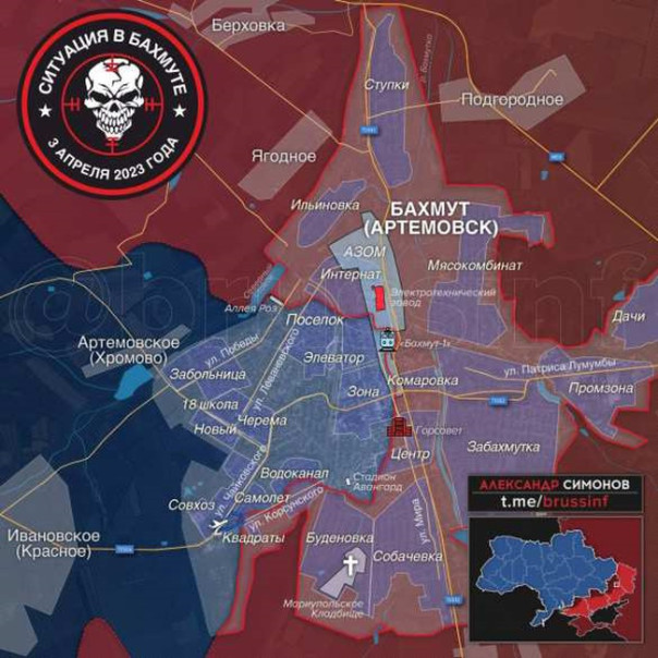 Большая часть северной промзоны Бахмута под контролем ЧВК «Вагнер», занявшей цех Бахмутского электротехнического завода и троллейбусное депо и приблизившейся к ж/д станции «Бахмут-1».
