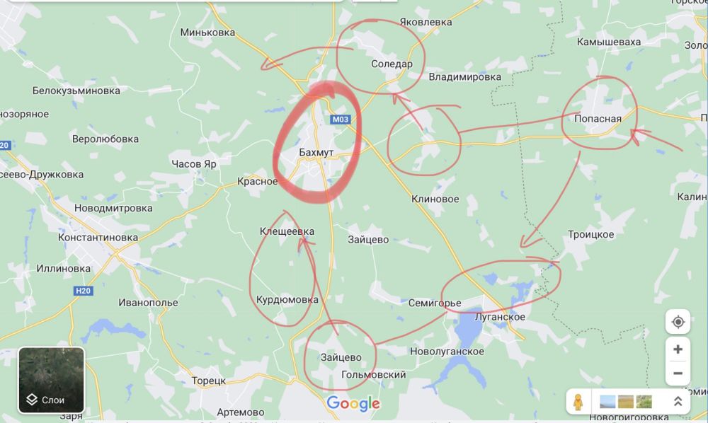 К слову, Суровикина назначили командующим СВО при смене тактики и переходу русской армии к оборонительной стратегии, поэтому план "Бахмутской мясорубки" он принял охотно, русской армии нужно было время построить эшелонированную оборону, и Артемовск играл роль громоотвода и точки притяжения хохла. Но ведь можно было устроить громоотвод и в другом месте? Нет, Артемовск это стратегическая глубина(внезапно) из-за обилия соляных шахт в округе, которые идеальны для хранения БК в самом сердце Донбасса, я писал об этом в "Страсти по вагнерам", его надо было брать.