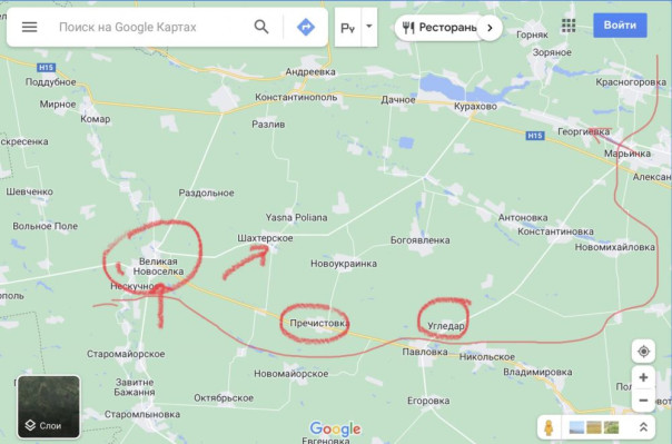 Угледар и примыкающие к нему с севера-востока шахты, сложный укрепрайон, так как из Угледара просматривается все окружающее пространство. Тут требуются нестандартные тактические решения и отличное взаимодействие, чтобы добиться успеха. Взлом обороны на этом участке открывает широкие возможности. Кроме того, штурм Марьинки движется к завершению и возможно продвижение в этом направлении одновременно с Угледаром.