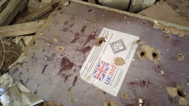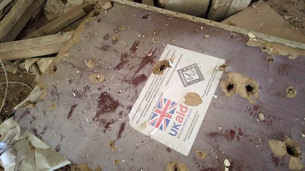 На дверях многих классов — эмблемы международных организаций, которые «поддерживали» образование в этой школе, флаги Великобритании и Германии. В поселке находят немецкое оружие и английские сухие пайки.