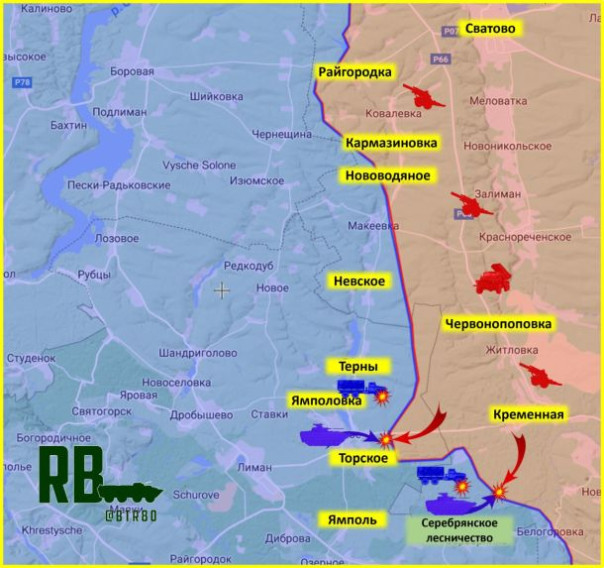 «По нашей информации, проукраинская администрация Купянска уже эвакуировалась. Тем временем наши войска занимают стратегические высоты на левом берегу Оскола — штурмуют Синьковку, Подолы, Куриловку и Ковшаровку на востоке от города.