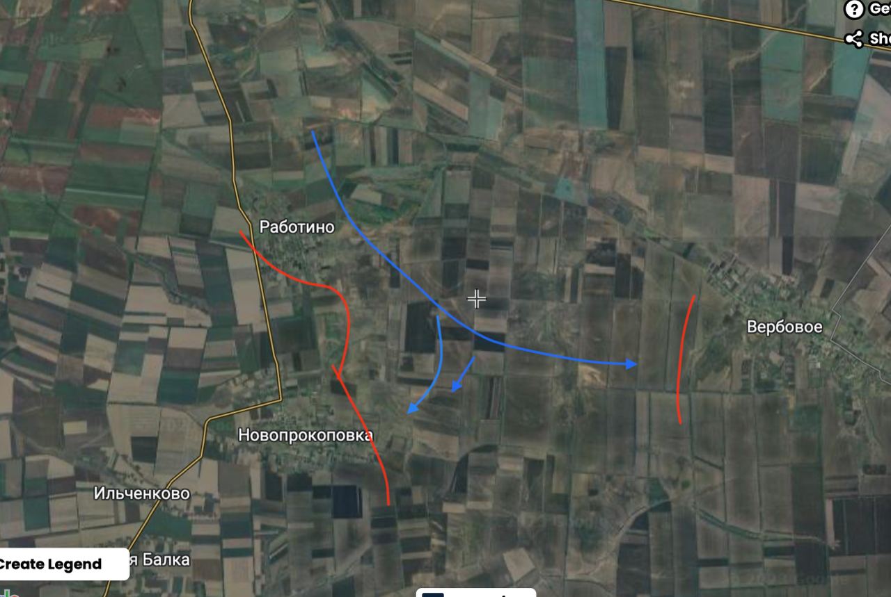 Для понимания - их высаживают в несколько километрах от Работино ( в которое они не очень рискуют заходить). Бандеровцы пешком по жаре в полной выкладке и увеличенным БК обходят село по полям, и пытаются в лоб, штурмовать наши мощнейшие укрепления перед селом Вербовое. Получив здесь несколько раз хорошо по морде, укропы теперь делают такую сложную петлю по полям, и пытаются раз за разом выйти во фланг наши укреплениям в районе села Новопрокоповка. (См. Карту 5). Все вместе получается около 10 километров плюс-минус. И после этого как вы понимаете надо еще стрелять, бегать, весело материться и кидать гранатки. И в идеале - либо удерживать взятые позиции, либо отступить таща на себе раненных. Представляете уровень цинизма командиров, отправляющих своих бойцов вот в такую войну. И кроме того оцените в целом красоту ума укров - положив половину своей лучшей штурмовой бригады и триумфально не взяв село Работино, укры просто тупо объявили его своим (надо понимать ко дню Независимости, чтобы Зеленского порадовать) и теперь делают вид что его нет, обходят по полям и пытаются воевать следующие укрепрайоны.