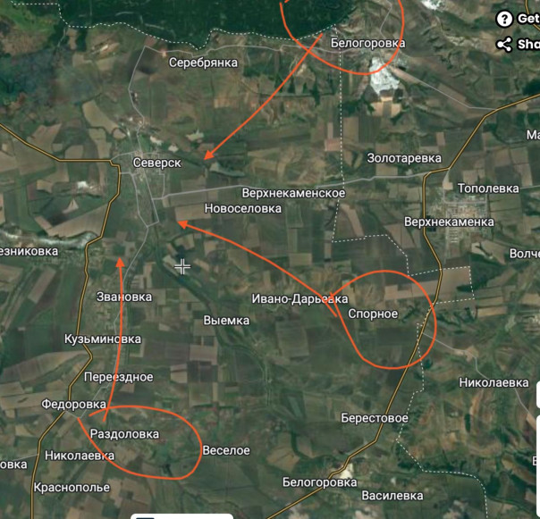 Далее рубеж Раздоловка, Спорное, Белогоровка - это исходные рубежи для атаки на Северск. Карта 2