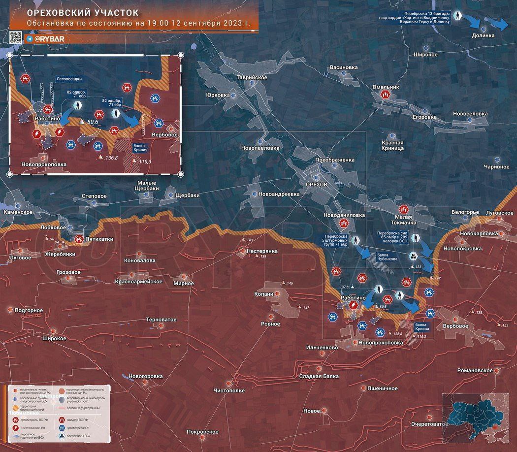 Ореховский участок: тяжёлые потери ВСУ и ввод в бой 71 егерской бригады. Обстановка по состоянию на 19.00 12 сентября 2023 года