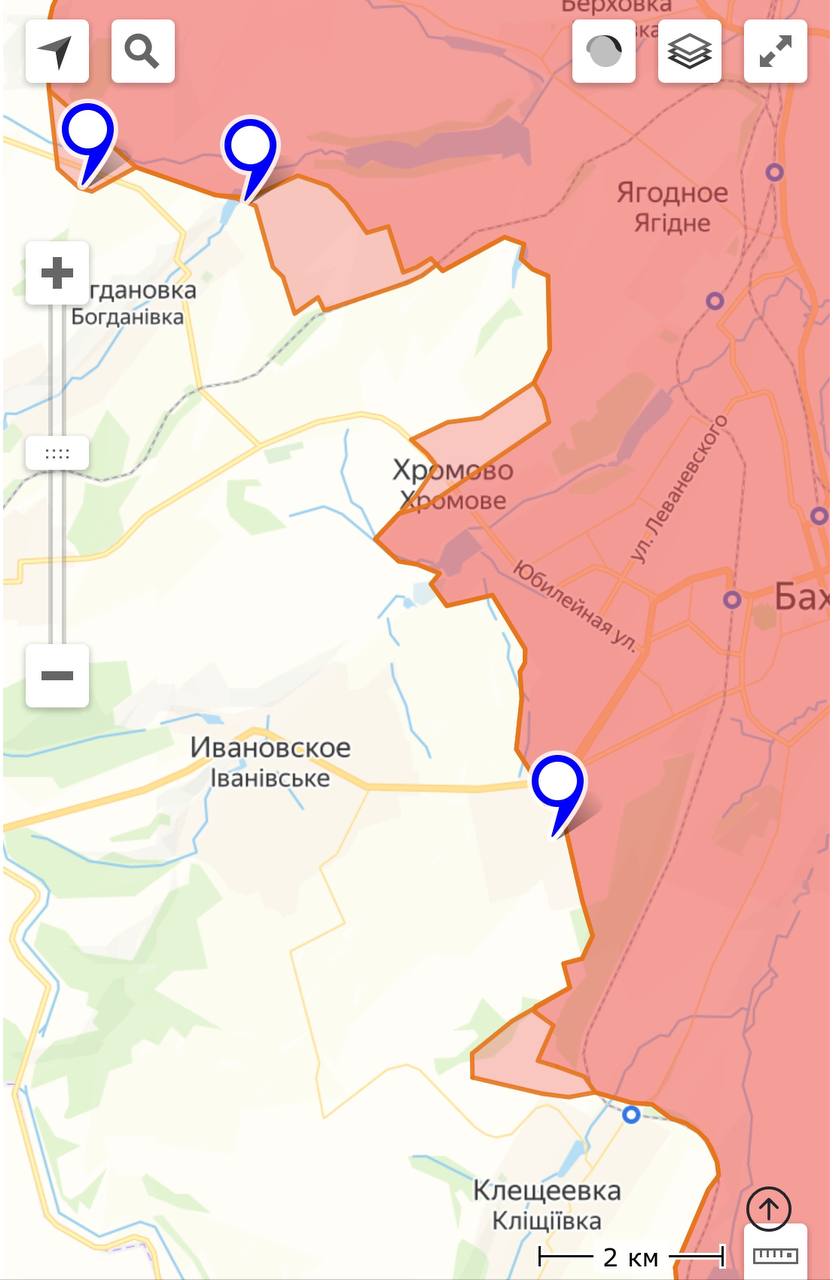 С начала недели наши бойцы перерезали дорогу на Богдановку и расширили плацдарм к востоку от неё. Вместе с продвижением к северу от Хромово это создало условия для штурма расположенного на высоте выступа между ними. В апреле-мае эта высота уже контролировалась нами, а после была оставлена.