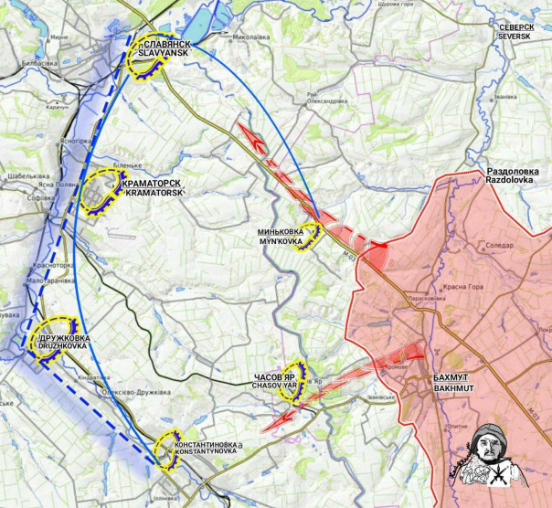 Далее Северский рубеж со стороны Раздоловки и второе прорывоопасное направление - через рубеж Миньковка на Славянск.
