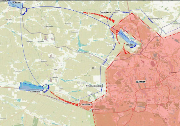 Восьмая армия, получив подкрепление, тут же усилила давление на других участках - сегодня уже взята Марьинка, начались бои за Новомихайловку (суть этой баталии опишу в ближайших выпусках фронтовых сводок), на очереди, очевидно, Угледар. Вернее северный фас укропской обороны там.