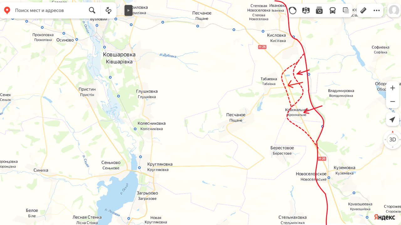 Судя по данным противника наши части в районе Табаевки продвинулись даже дальше, чем ранее было подтверждено нашими источниками. Они также, как и в районе Крахмального по состоянию на вечер перевалили через трассу и закрепились на ней.