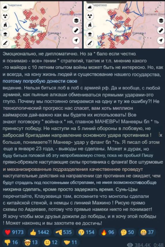 Это его первая публикация в ТК в 2024 году (последняя 22.12.2023), значит ситуация действительно требует внимания. При Залужном такой херни не было.