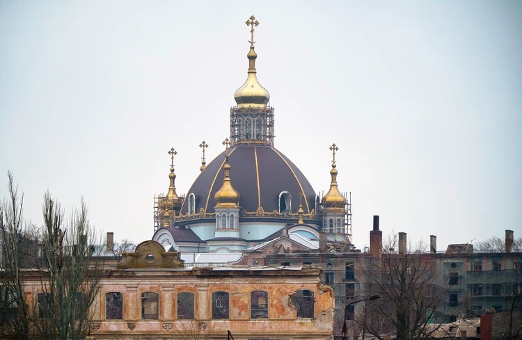 Вокруг Покровского собора Мариуполя идёт восстановление сталинской жилой застройки и других строений центральной части города