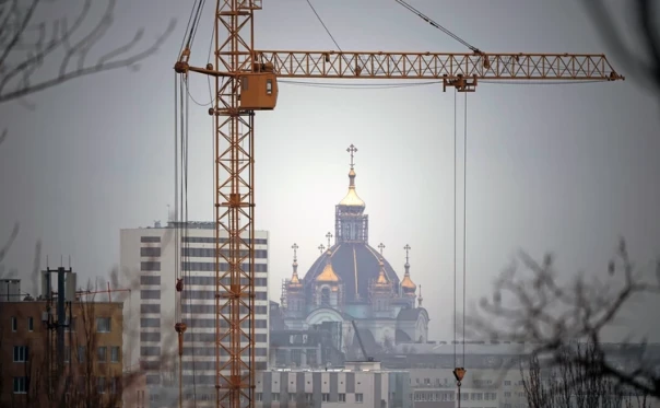 У Покровского храма — того самого, где и был сделан знаменитый снимок, сейчас кипит работа. Здания обнесены строительными лесами и идет их восстановление.