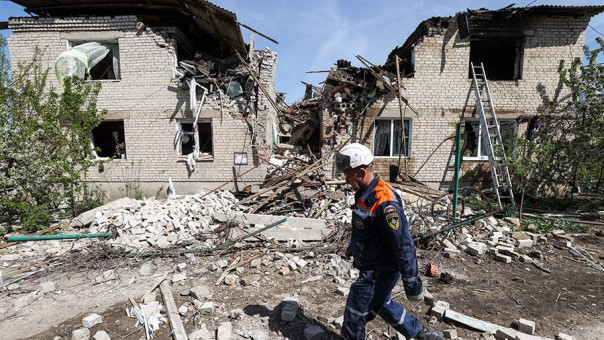 Украинские боевики 12 апреля нанесли удар из реактивных систем залпового огня (РСЗО) по жилому кварталу Токмака. Обстрел пришелся по домам, в которых проживало гражданское население. «Известия» показывали кадры последствий атаки.