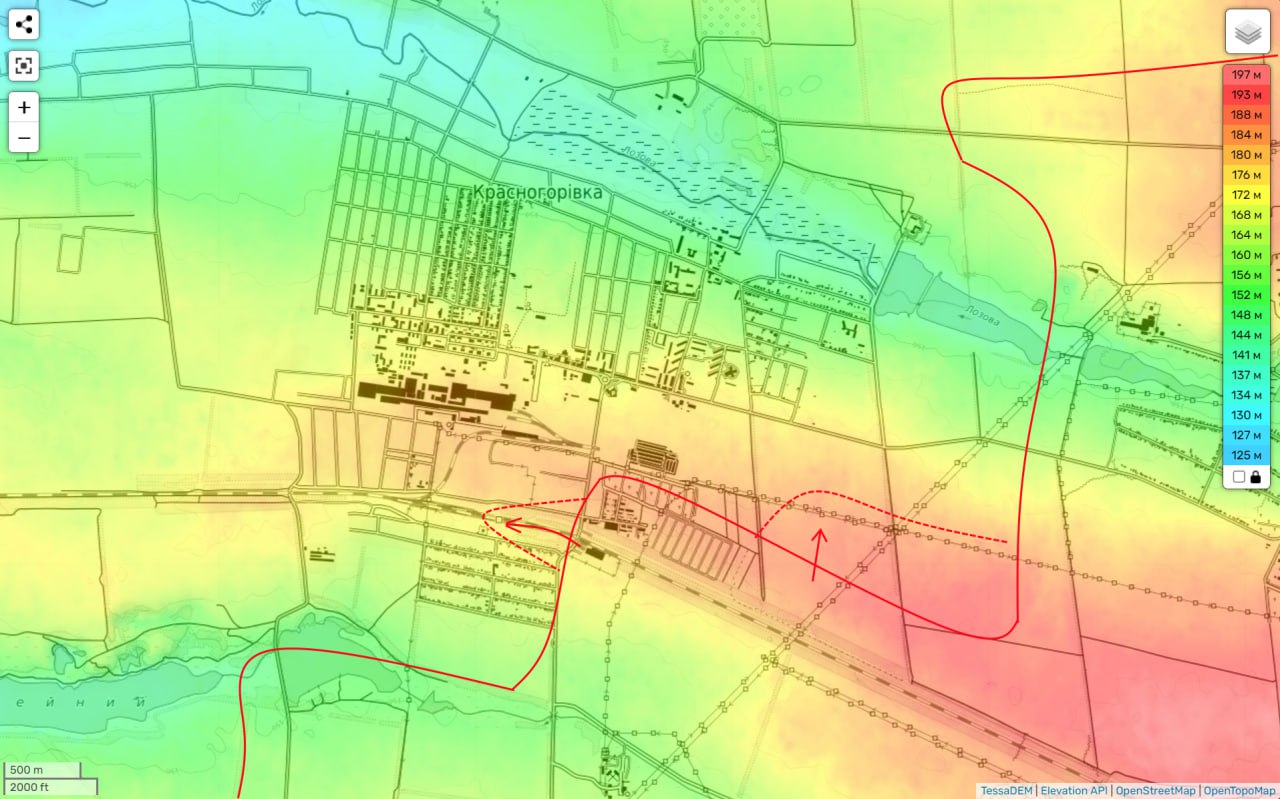 Вчера наши части, опираясь на занятую ранее юго-восточную часть города продолжали расширять свой контроль "подтягивая фланги". Противник был выбит из опорника восточнее города. А еще наши штурмовики, двигаясь по ЖД колее на запад от вокзала, смогли закрепиться севернее дачного массива, за который в последние дни шло ожесточенное сражение.