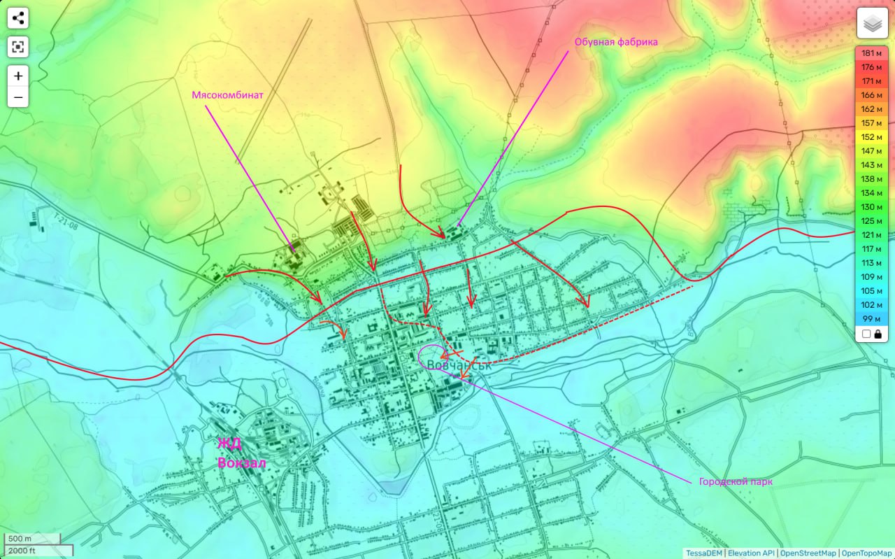 Одновременно с этим, также вдоль реки с северо-западной части города наши штурмовики пробуют отрезать центр города от находящегося западнее и за рекой района ЖД вокзала.