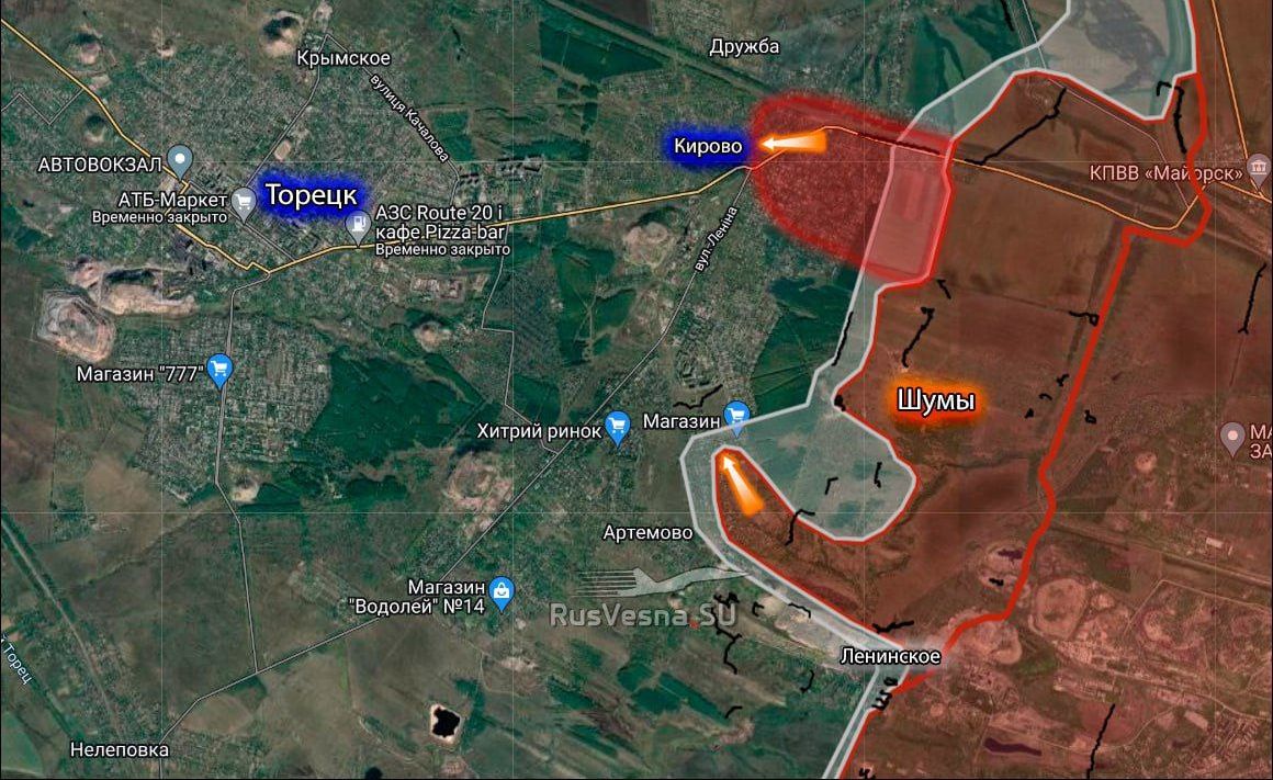 Наши войска продолжили наступление на плечах отступающего противника, выбили последнего с территории кладбища на западе Яснобродовки, и дошли до реки Волчья, в окрестностях Карловского водохранилища.