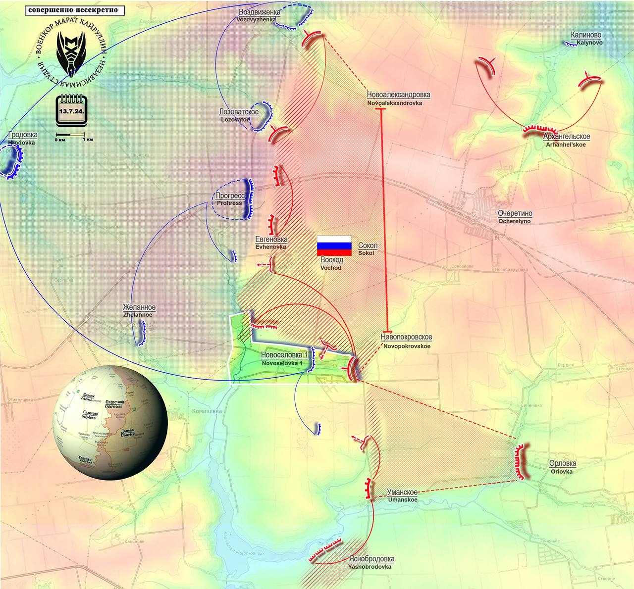 Продвинулись к Новосëловке и в полях южнее Новопокровского, ликвидировав там выступ с закрепившимися в нём укропами. Теперь наши уже приближаются к окраине еë южной части, что ещë больше усложнит положение укропов.