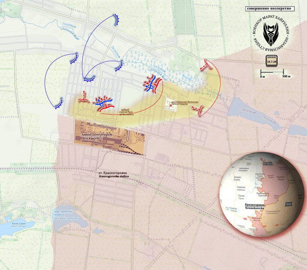 В Красногоровке ВС РФ значительно продвинулись в восточной части города, полностью взяв под контроль район многоэтажек и частный сектор севернее них. Перешла под контроль наших подразделений и центральная больница, а в северной части города продвинулись на запад практически до Центрального парка.