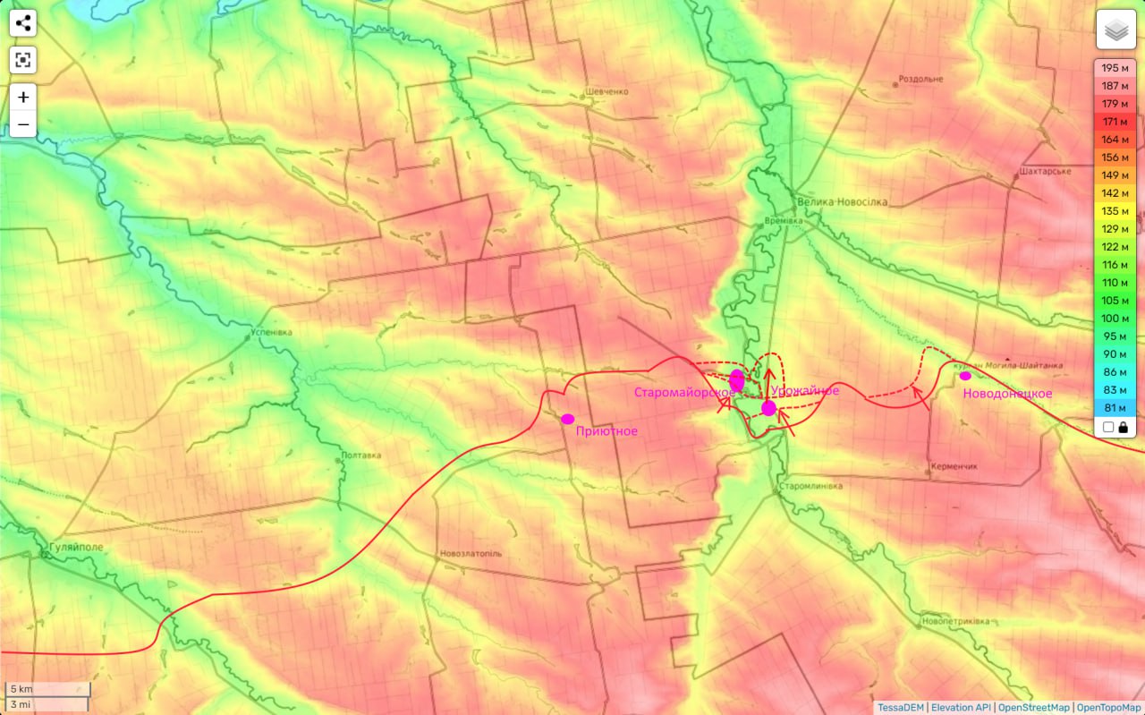 Еще раз хочу отдельно отметить, что все успехи здесь мы имеем не в рамках мощной и хорошо обеспеченной авиацией наступательной операции ВС РФ, а в рамках «отвлечения резервов противника» от направления главного удара. Между тем, результат на карте. И он впечатляющий. Что говорит о хорошем планировании и взаимодействии на поле боя тульских десантников.