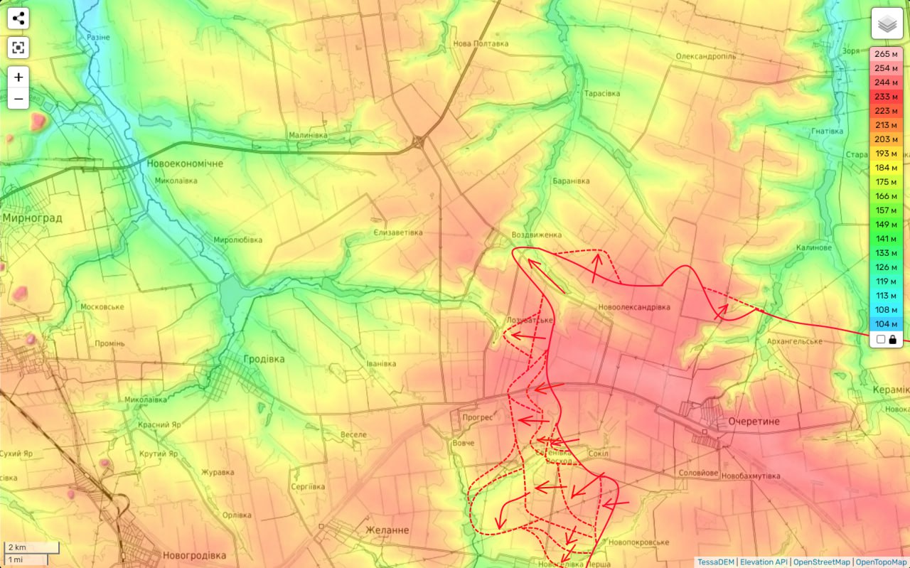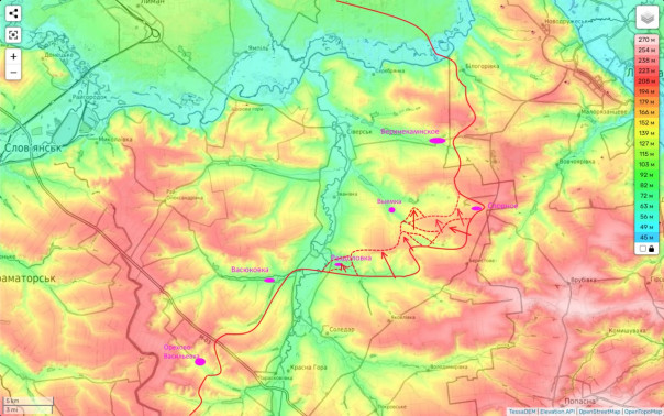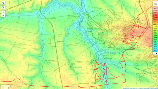 На Торецком участке Донецкого направления ВС РФ продвинулись от южной части Новгородского (Нью-Йорк) в направлении Розовки (Олександрополь), расширяя таким образом основание "клина", который находится под контролем нашей армии.